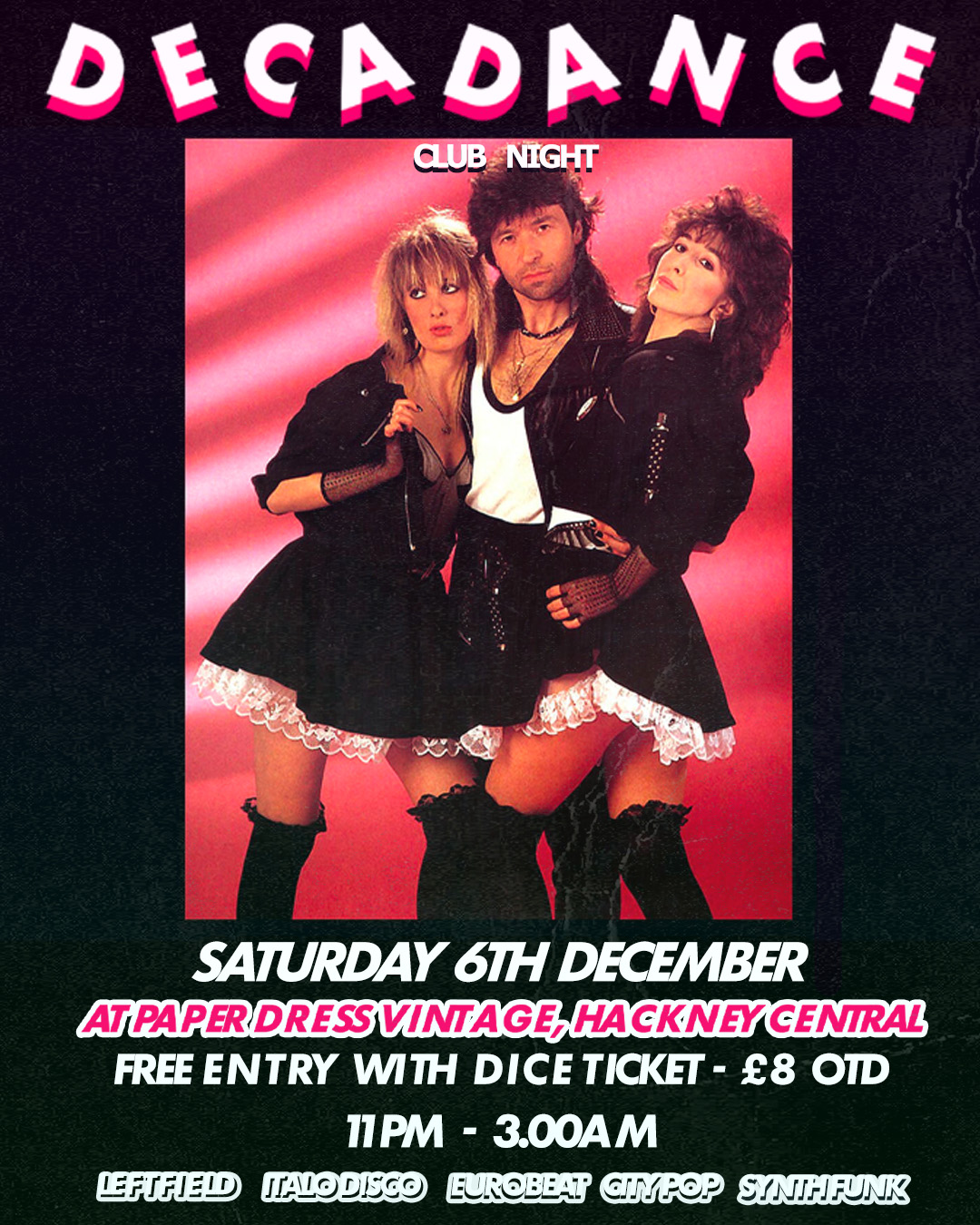Expect a sexy disco club night with vocoder-driven tunes alongside bountiful helpings of Italo-Disco, synth boogie, a touch of Japanese city pop, HI-NRG, leftfield anomalies & funk grooves⚑