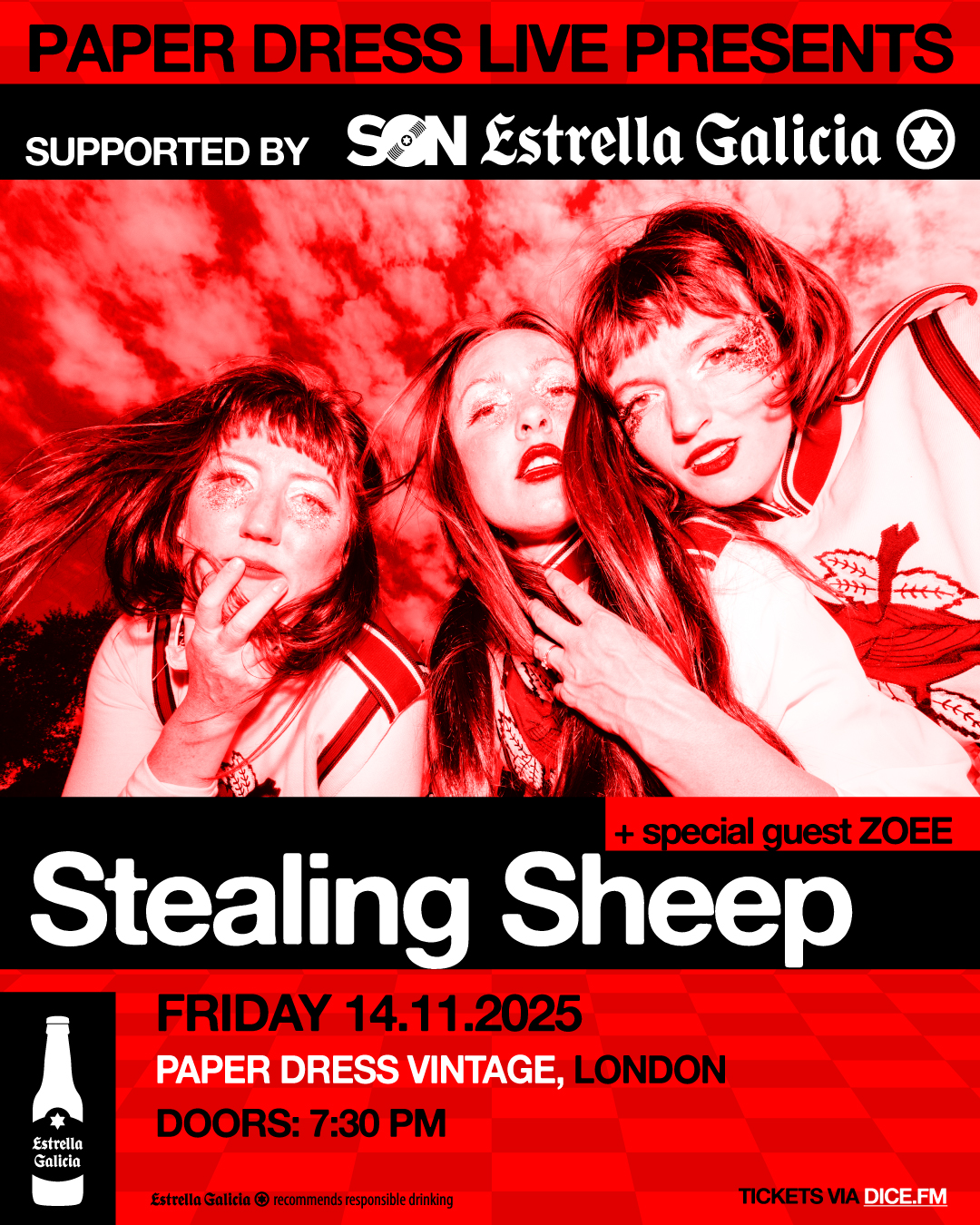 Paper Dress Live in association with SON Estrella Galicia are delighted to present a very special intimate show with Stealing Sheep, plus special guests to be announced!