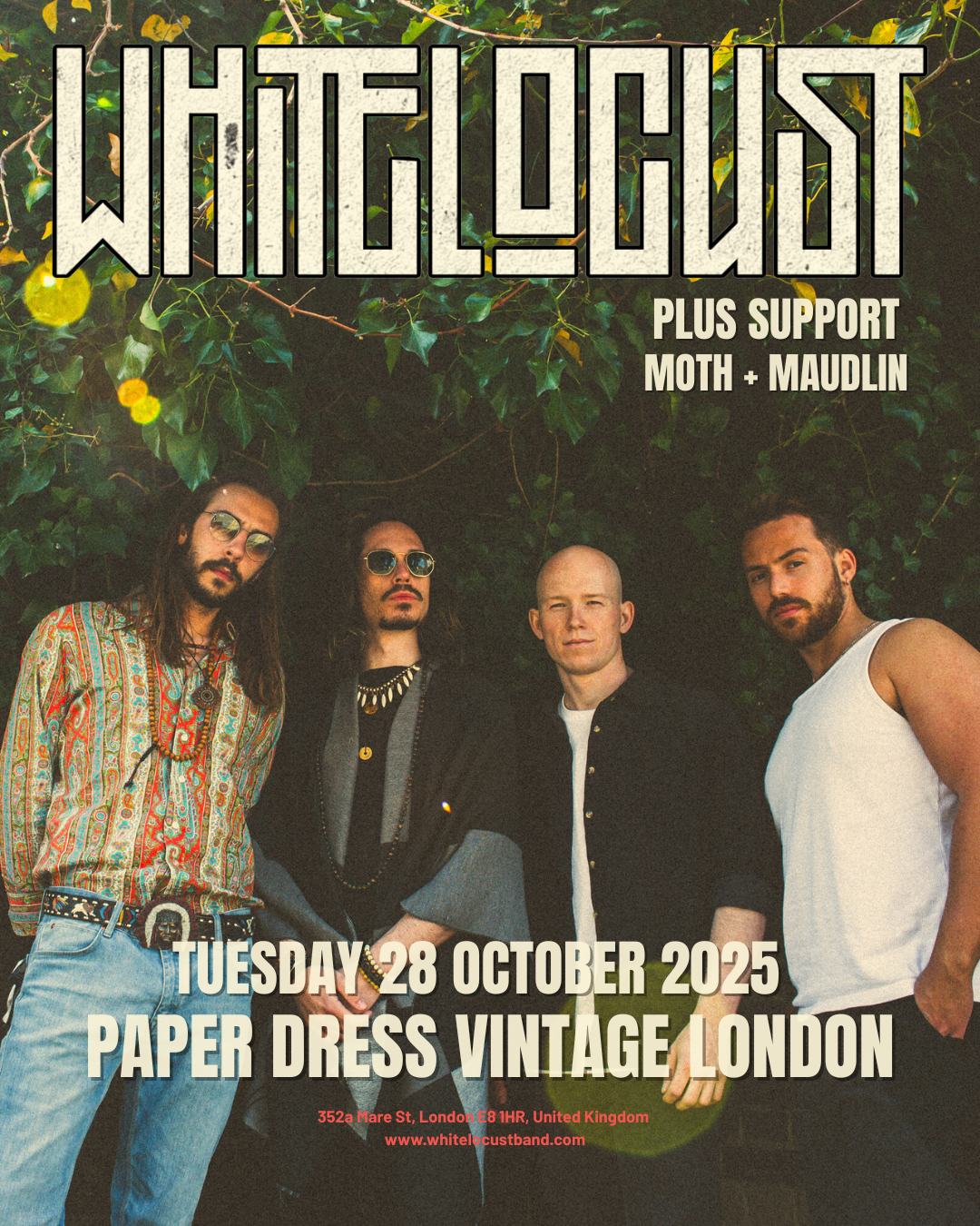 Whitelocust is a London-based band that fuses the raw energy of the ’90s alt rock scene with psychedelic textures, funk grooves, and shoe-gaze atmospheres. The band formed in 2022 and comprises vocalist Stefan Florea, guitarist Alex Korr, bassist Igor Vieira and drummer Keir Ansell.