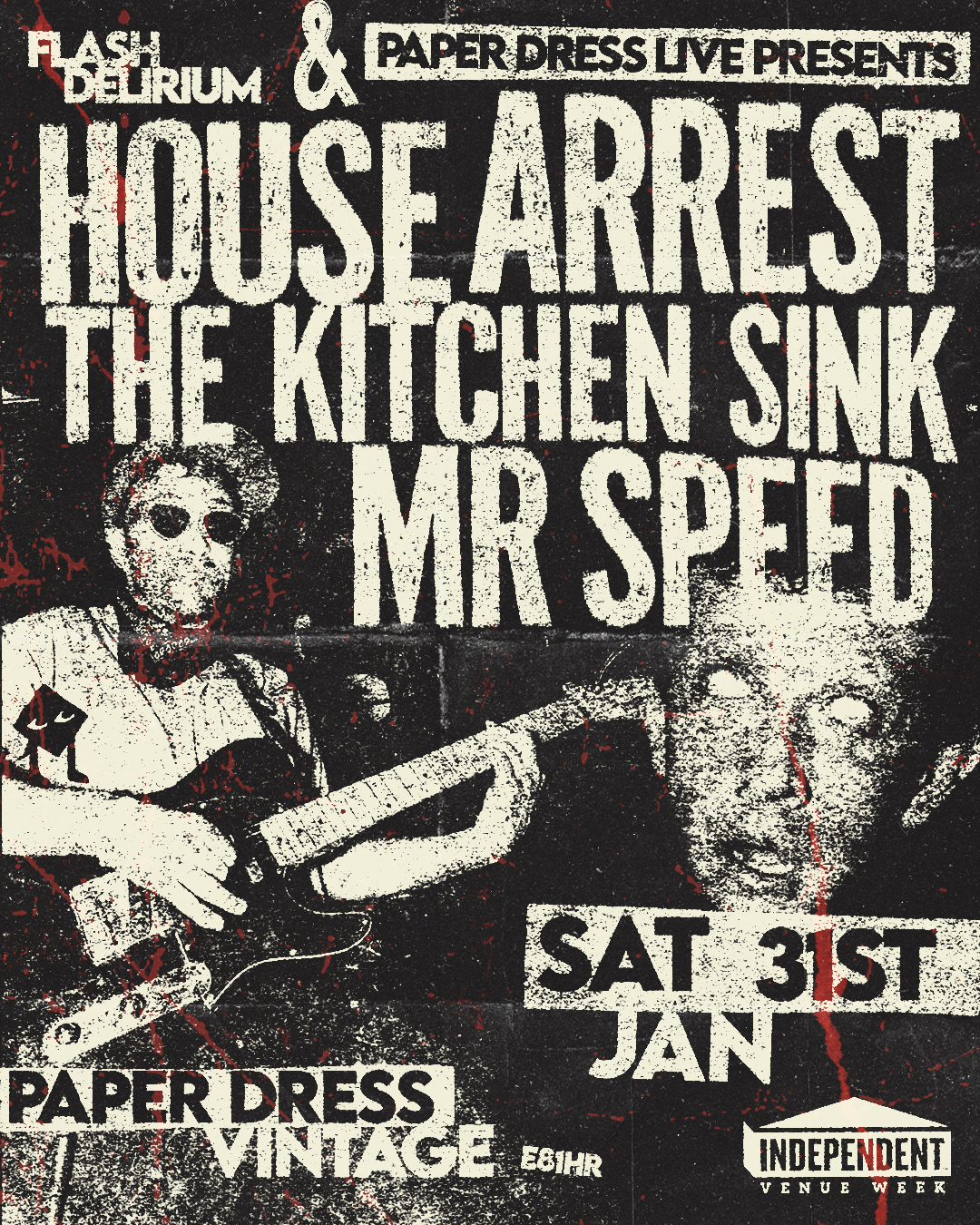 House Arrest don’t shy away from the grime and grit but instead hoard it, moulding it into bite-size chunks of infectious driven gutter-rock. With live shows that are a looser than spare change but musicianship that is tight and precise, House Arrest have carved a chunk in the current musical landscape and continue to dig deeper into unknown territory