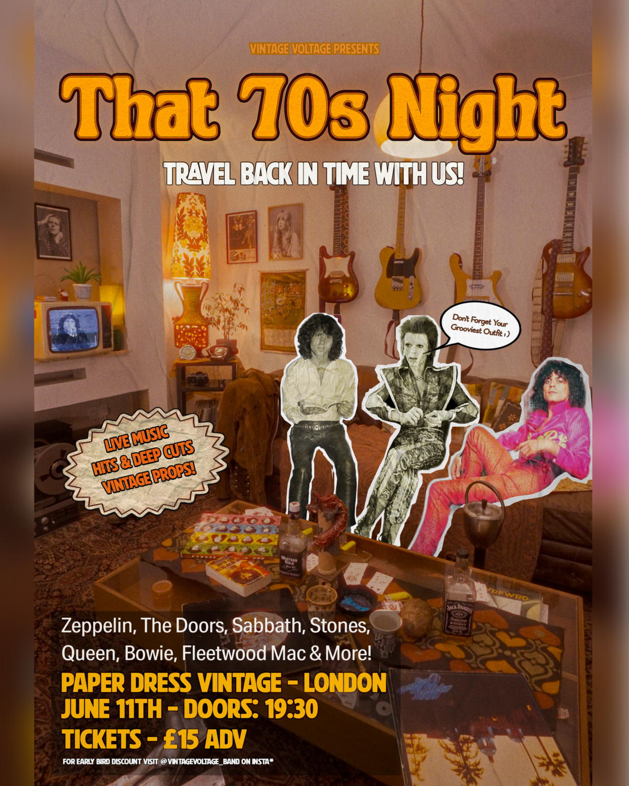 That 70s night is back by popular demand! After aselling out inJanuary Vintage Voltage return to Paper Dress Vintage for another full-blown trip back to the golden age of rock!