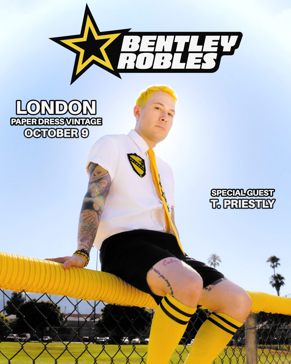 Turning heartbreak into bangers and gay clubs into church, Bentley Robles has captivated fans worldwide with his infectious sound. With over 10 million career streams and a fanbase that stans him like a main pop girl, Bentley has become one of the most exciting voices in indie pop.