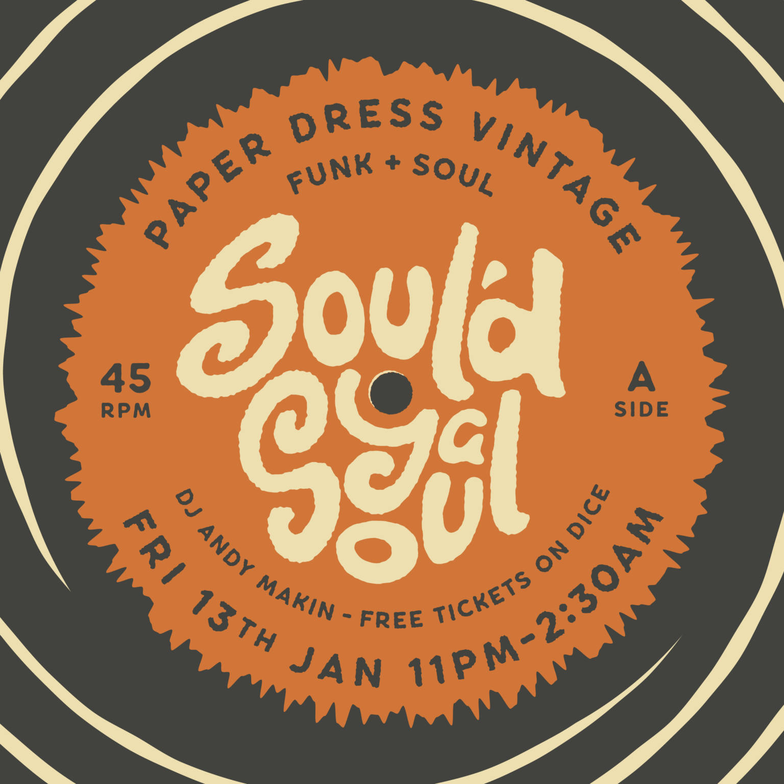 Soul’d Ya Soul is back at Paper Dress for anther evening of dancefloor dynamite! DJ Andy Makin will be digging deep in the crates and dropping the finest disco, funk & soul treats all night long.